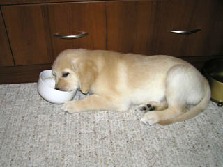po trochę np. kefiru. Powoli zaczyna się też brać za niemoczoną karmę.