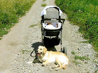 obcy - nie odstępuje tej osoby na krok. A na spacerach pilnuje wózka