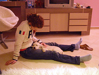 Na początku dziękujemy za maila i za dołączenie Seniki do reszty rodzinki na www :), w życiu naszej niusi trwa obecnie intensywny okres socjalizacji z człowiekiem :), czas karnawału skłania nas do składania wizyt znajomym, a na wszystkie te imprezy zabieramy naszą sunię, przez co z dnia na dzień Seni poznaje coraz to więcej ludzi :), bardzo lubi dzieci, stara się śledzić każdy ich krok, i wszędzie za nimi podążać :), [...] je juz normalnie :), tak że myślimy, że po okresie tęsknoty po przeprowadzce, i odnajdywaniu się w nowym domu, i otoczeniu, powoli wraca do pełni formy :), wychowawczo nie sprawia większych kłopotów, trochę porozrabia, trochę pogania kota, czasami werbalnie wyraża swoje niezadowolenie, ale ogólnie jest bardzo grzeczną dziewczynką :) dziś były uszy i pazurki, wszystko przebiegło bardzo sprawnie, grzecznie i cierpliwie :), a poza tym Seni jest bardzo kochaną i mądrą małą suczką :), pozdrowienia