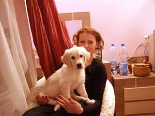 Witam serdecznie! Malutka pierwszej nocy jak i kolejnej chciała za wszelką cenę spać w łóżku, ale byliśmy twardzi choć muszę przyznać, że było ciężko, gdy Seni robiła do nas maślane oczka ;) Z kolei dzisiaj rano Senika była oburzona, że zamiast się z nią bawić to suszę włosy, więc postanowiła cały czas szczekać póki nie przestałam suszyć głowy, mam nadzieję, że jej to minie;) [...] nasz maluszek już się rozbrykał na dobre, wczoraj byliśmy z nią u naszych znajomych i nasza niusia w nocy odgryzla wtyczkę od lampek na choince. Na szczęście lampki były wyłączone więc nic się jej nie stało;) a rano jak się obudziliśmy to Seni jakby nigdy nic spacznie spała sobie z nami na łóżeczku;) w załaczniku przesyłamy kilka fotek;) Gorące pozdrowienia dla całej rodziny od nas i Seni |