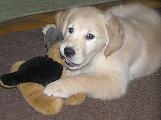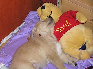 Witam Serdecznie Za nami pierwszy weekend w powiększonym składzie :-) Nie można powiedzieć żebyśmy się nudzili, Capri zapewniła nam wiele atrakcji :-) Po pierwsze pobudka o 6.30 w sobotę i 7.00 w niedzielę. W nocy na szczęście nie piszczała, ale za to chciała się bawić. Wczoraj było już lepiej, po krótkich pieszczotach zasnęła koło łóżka. Z jedzeniem nie ma problemów, z siusiu i resztą bywa różnie, raz się uda na pieluszkę a raz nie :-) Jak już wspominałam przez telefon Capri uwielbia kąpać się w swojej misce z wodą i robić kąpielisko wokół miski, poza tym lubi sobie też poszczekać, na co my oczywiście nie zwracamy uwagi. Pomimo niewielkich rozmiarów głosik ma już dosyć donośny :-) W załączeniu przesyłam kilka zdjęć. Pozdrawiam |