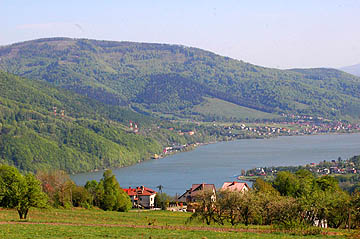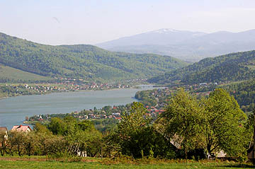 W drodze powrotnej każdemu pielgrzymowi zaprezentują się przepiękne widoki... Na górę Żar z unikalną elektrownią szczytowo-pompową i jej zbiornikiem na szczycie, ... ... i na Zalew Żywiecki,