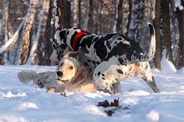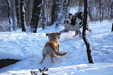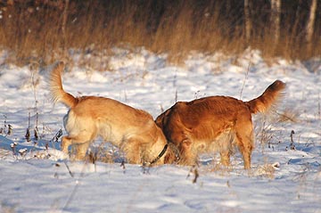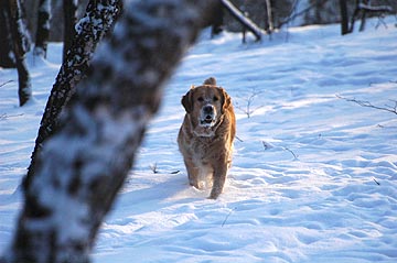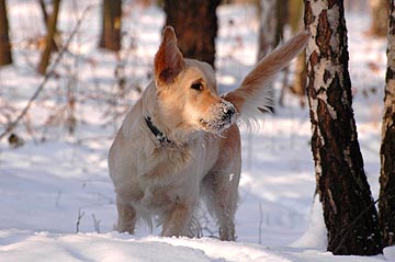 Cichutko przemykamy po szeleszczącym śniegu, obwąchując trawkę