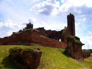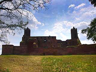 Oto i zamek w całej okazałości! Poniżej jedna z dwóch ocalałych baszt. Zamek był większy. Brakuje dwóch identycznych oraz jednej, najwyższej wieży.